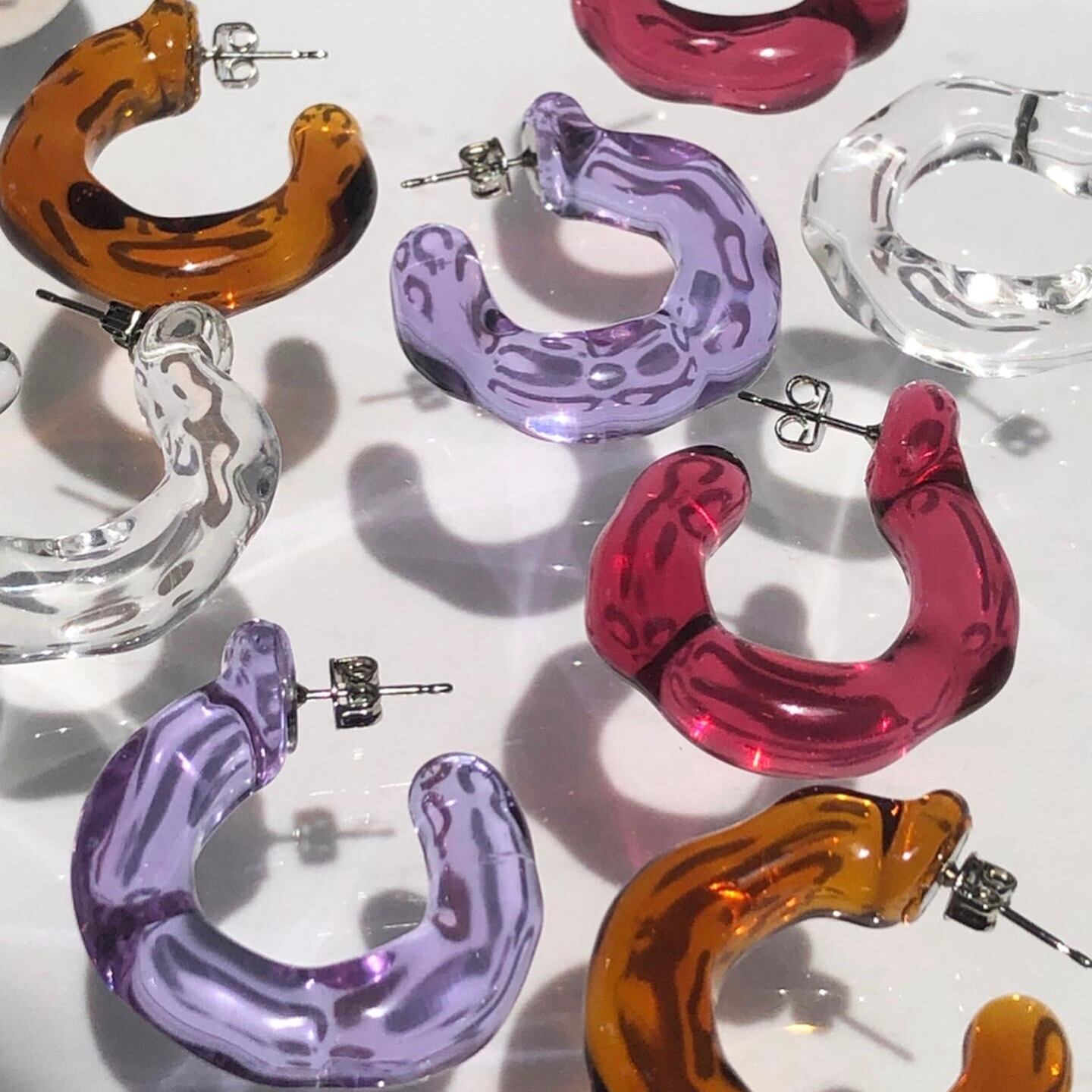 新作glass pierce 耳に負担がかからないよう 大きさに拘って何回も打ち合わせして誕生 実験用ガラスで使用される硬質ガラスを 使った、強度が高い素材を使用。