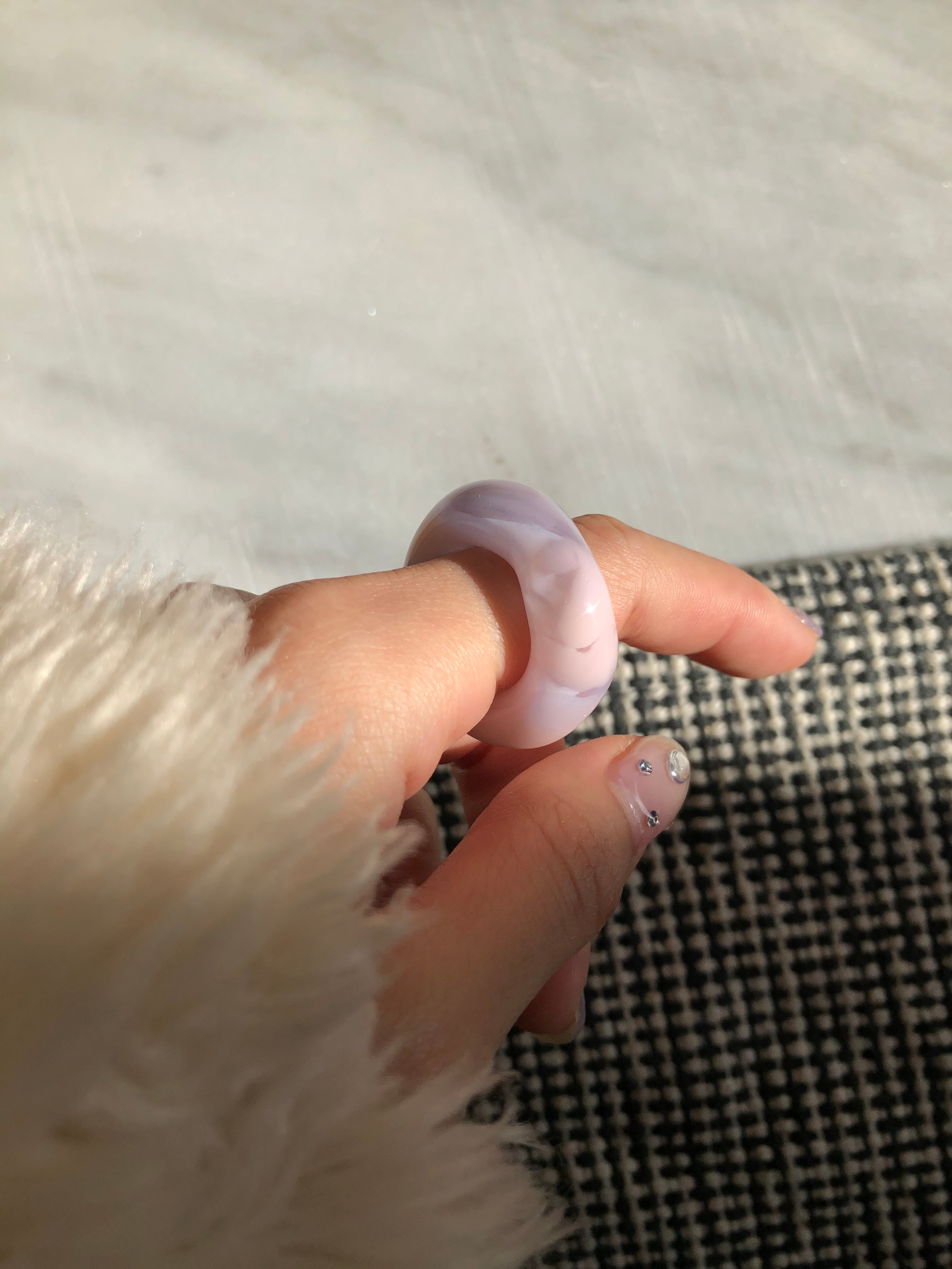 甘いキャンディーのようなガラスリング 乳白ピンクと、日陰ではブルーが濃く見える 色の違いをお楽しみください。 サイズば6〜19号まで 備考欄にお好きなサイズをお書き下さい