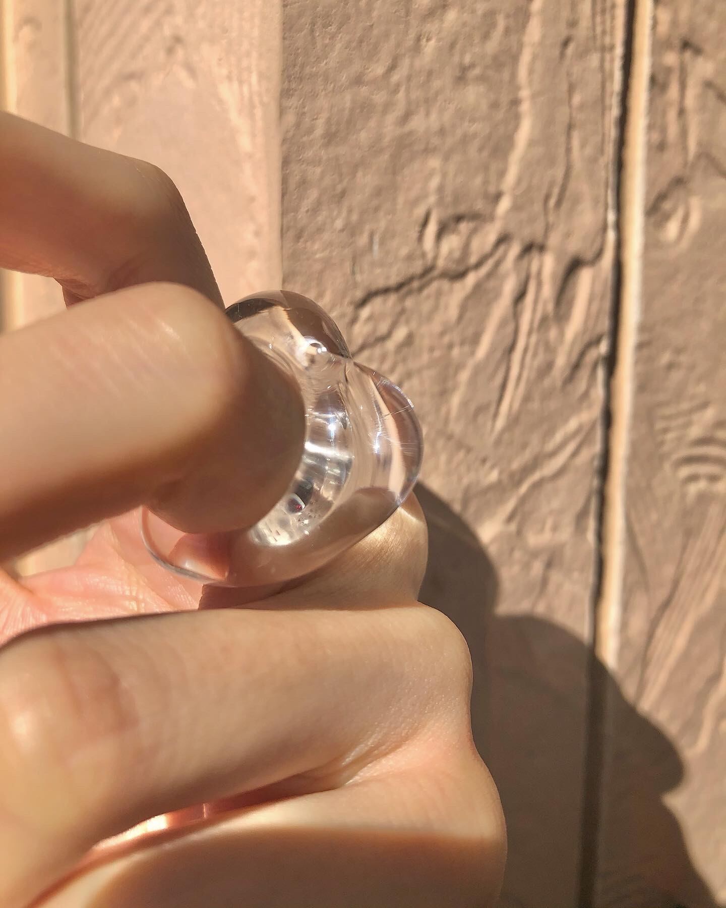 ハートモチーフのガラスリング 素材は割れにくい、強化ガラスを使用。