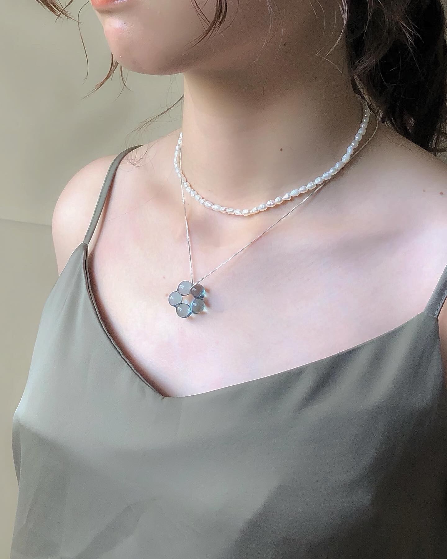 可愛すぎないフラワーモチーフの ネックレス。カラーは花や葉っぱを連想させる アースカラー展開 素材 silver925 強化ガラス 45cm