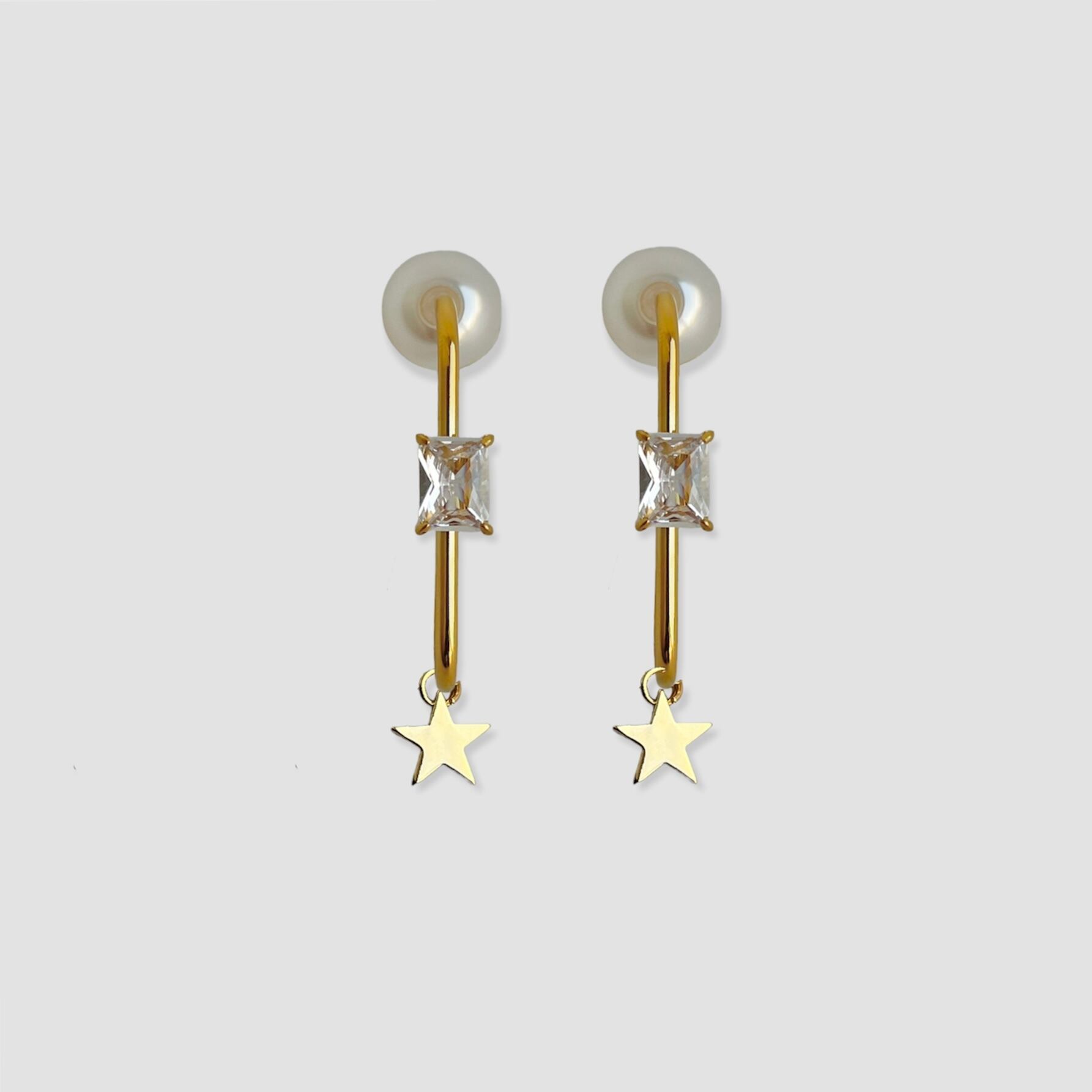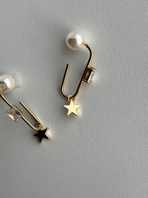 パールのキャッチを前に持ってきても 可愛い2way ビジューがついたUピアスに 小さなスターがコロコロと揺れる女性らしい アイテムです サージカルステンレス製 (アレルギー対応)